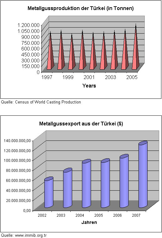 Mit der fortschreitenden Entwicklung des Weltmarktes hat auch die Rolle der türkischen Gußindustrie, als Lieferant für europäische Gußteile-Abnehmer, in den letzten Jahren stark zugenommen. Während die europäischen Gießereien ihren Produktionsumfang in den Jahren 1970 bis 1988 lediglich um 7,8 erhöhten, konnte diese Branche in der Türkei eine Wachstumsrate von mehr als 250% ausweisen.
